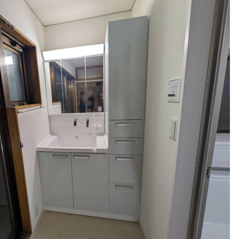 同時に取り替えた洗面化粧台は、広々と使える洗面ボウルを採用。気になっていた収納力も大幅にアップし、ごちゃつきがちな小物もスッキリ片付く使い勝手の良い空間へと生まれ変わりました。