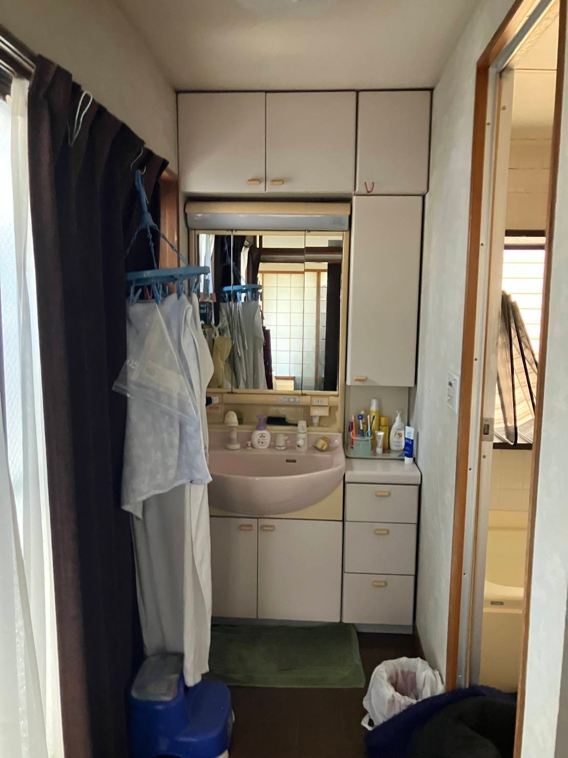 昔ながらのタイル張りのお風呂(在来浴室)をお使いで、「冬場はとにかく足元が冷えて使い勝手も悪い」「タイルの目地にできたカビや汚れがどうしても落ちない」と、毎日の寒さとお手入れに大きなお悩みを抱えていらっしゃいました。また、隣接する洗面・脱衣室も経年による汚れが気になり始めており、「もっと収納を改善してスッキリさせたい」というご要望をいただいたため、水まわり全体を快適にするリフォームをご提案いたしました。