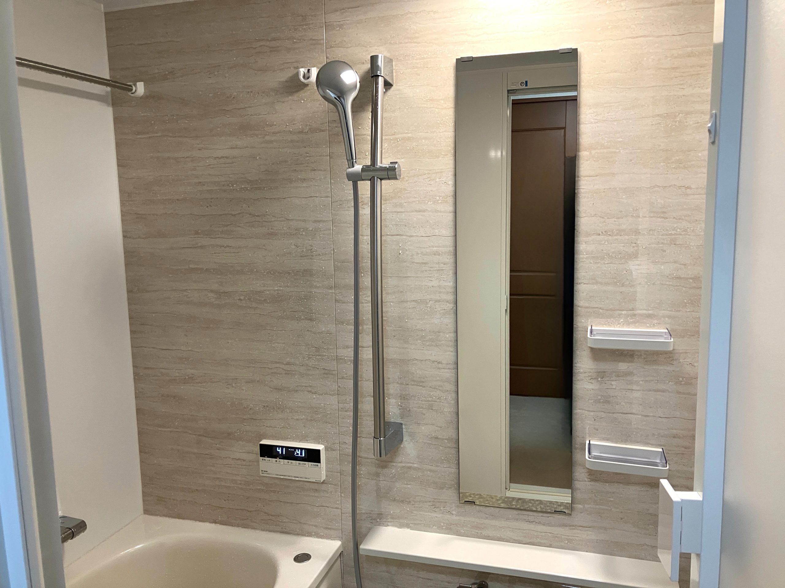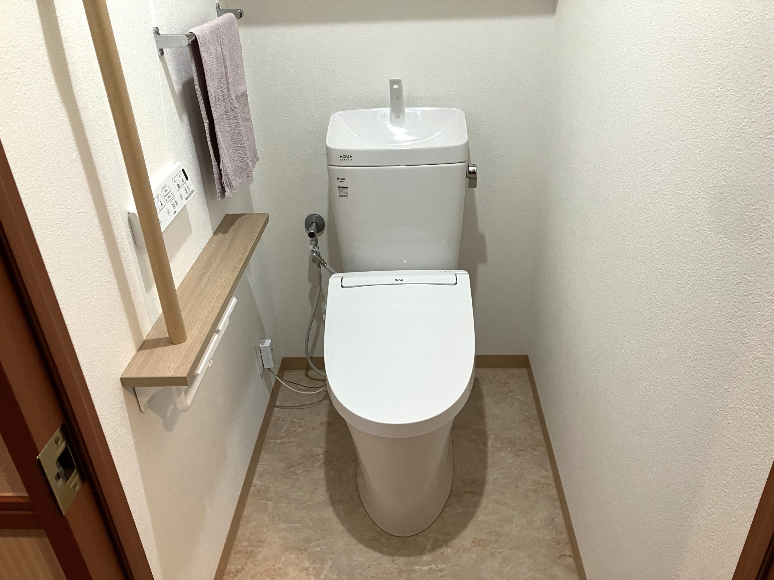 さらにトイレは、ガンコな汚れもツルンと落ちる独自素材(アクアセラミック)を採用したLIXILの「アメージュ便器」へ一新!これまで落としづらかった汚れがサッと拭き取れるようになり、浴室・トイレともに日々のお掃除の負担が改善されています。