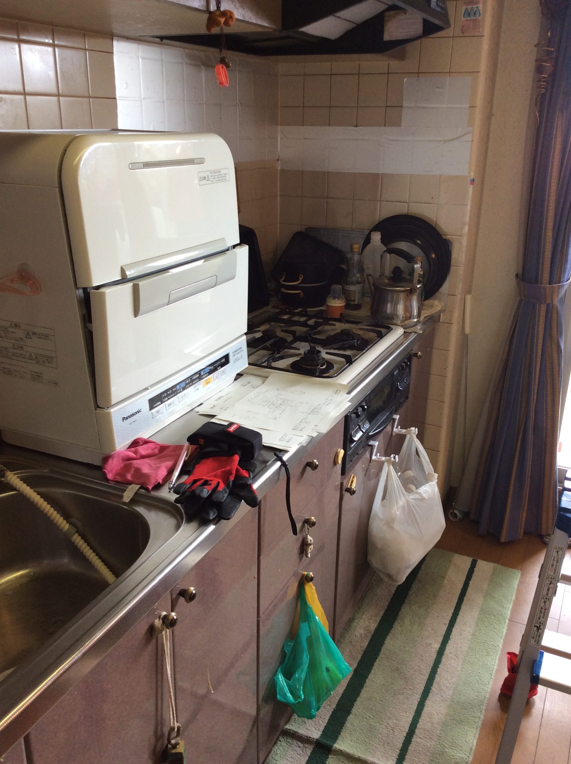 当初はビルトインコンロ・レンジフードのみの取替えを検討されていましたが、卓上タイプの食器洗い乾燥機により、