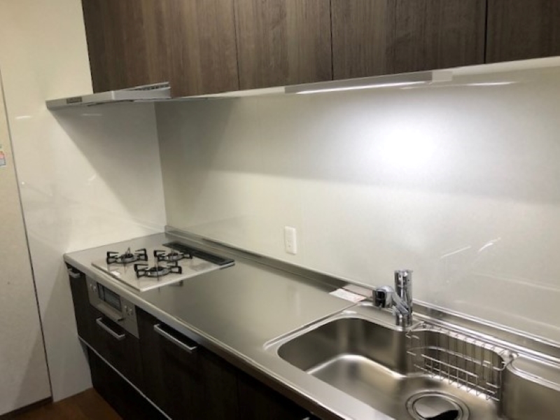 キッチンまわりの壁をタイルからパネルへ変更。