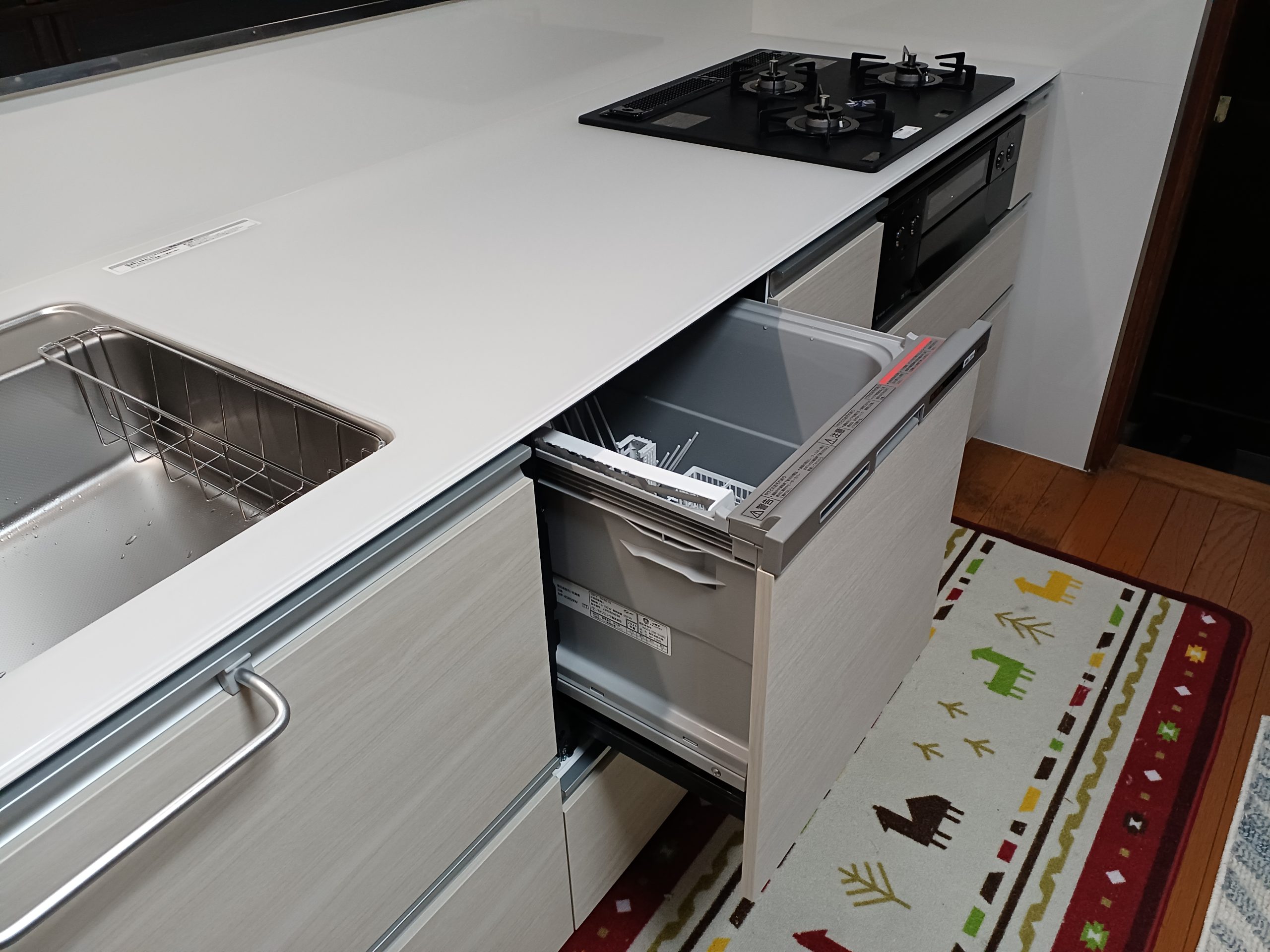当初は「コンロとレンジフードを新しくしたい」と店舗にご来店いただきました。しかし、詳しくお話を伺うと、長年お使いの食器洗い乾燥機やキッチン本体の経年劣化も気になり始めているとのこと。そこで、これからのくらしをより快適にするため、「キッチン全体のまるごとリフォーム」をご提案させていただきました。