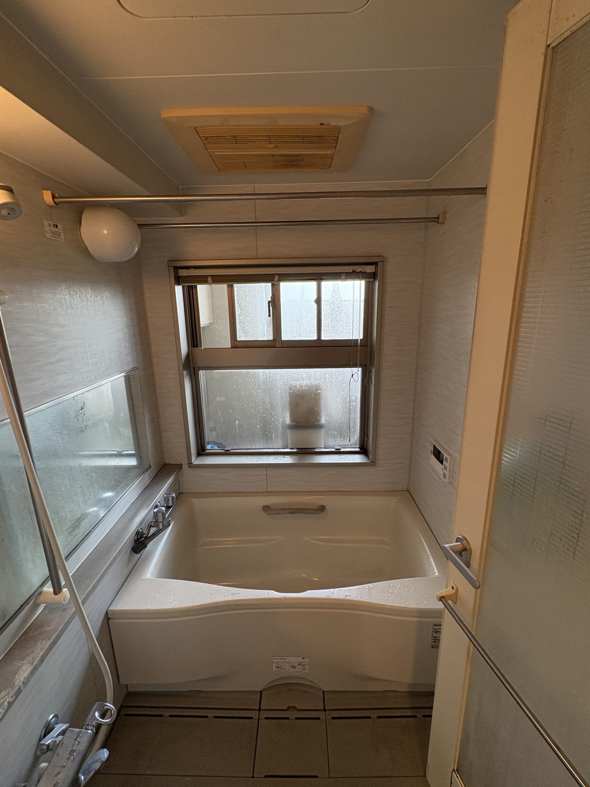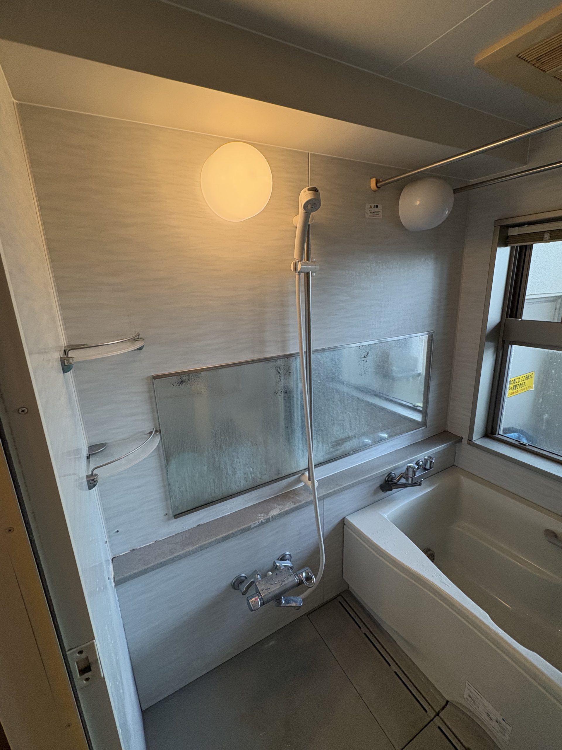 ご使用から20年を超え、「古くなった浴室を新しくしたい」とご相談をいただきました。大切にお使いいただいておりましたが、鏡のくすみや水栓金具などに長年のご使用による経年劣化が見受けられたため、浴室全体を一新するリフォームをご提案いたしました。