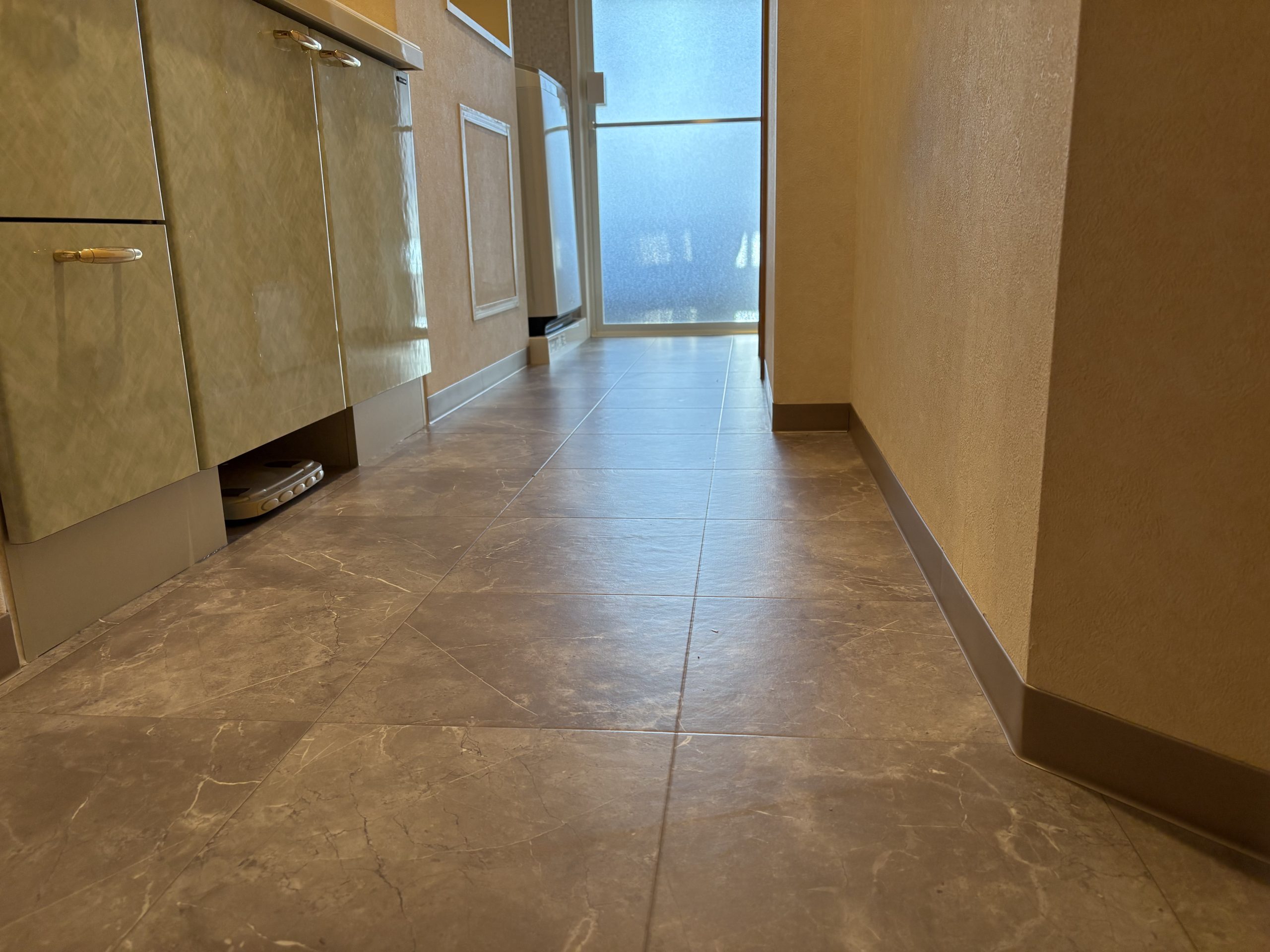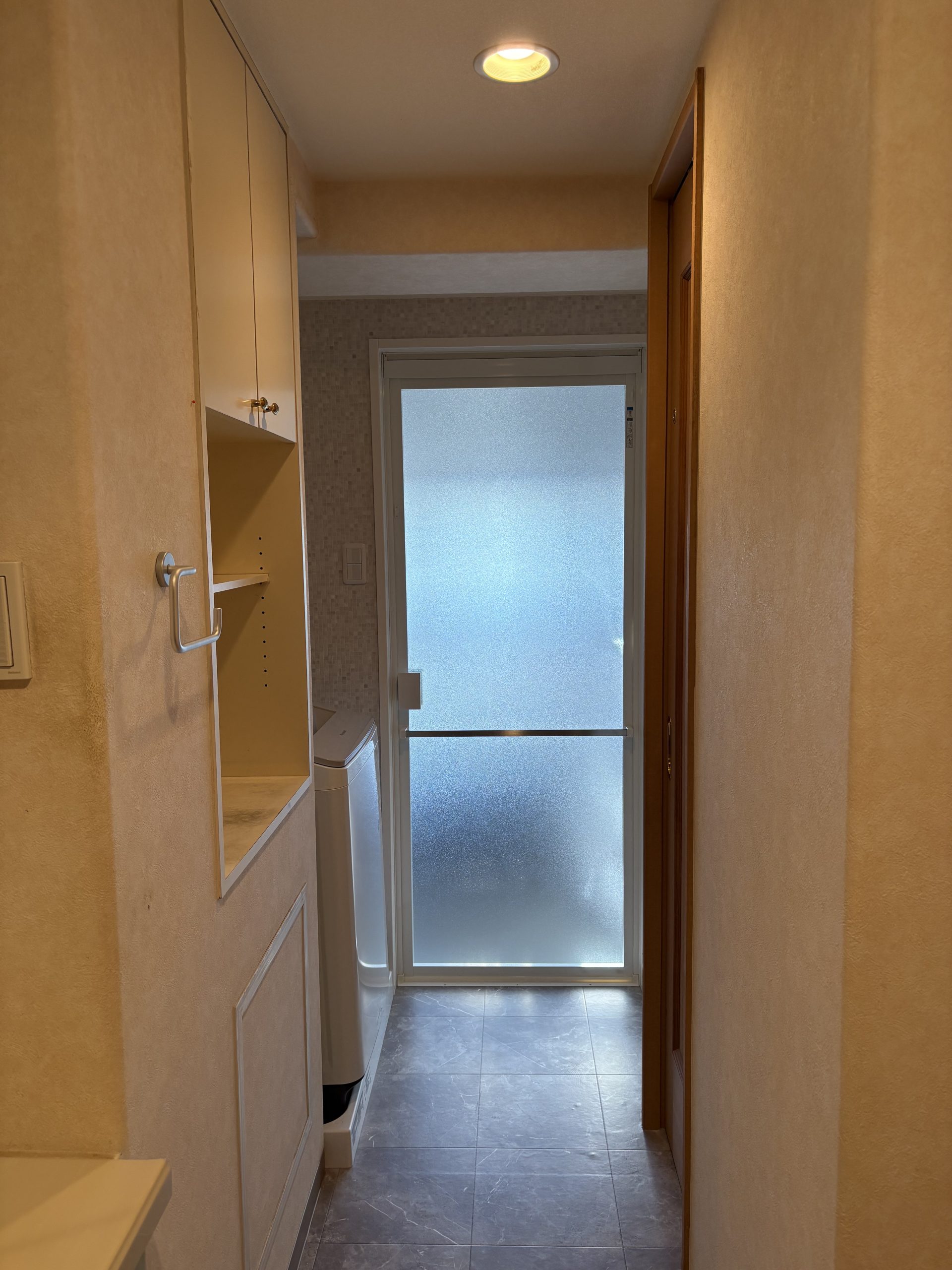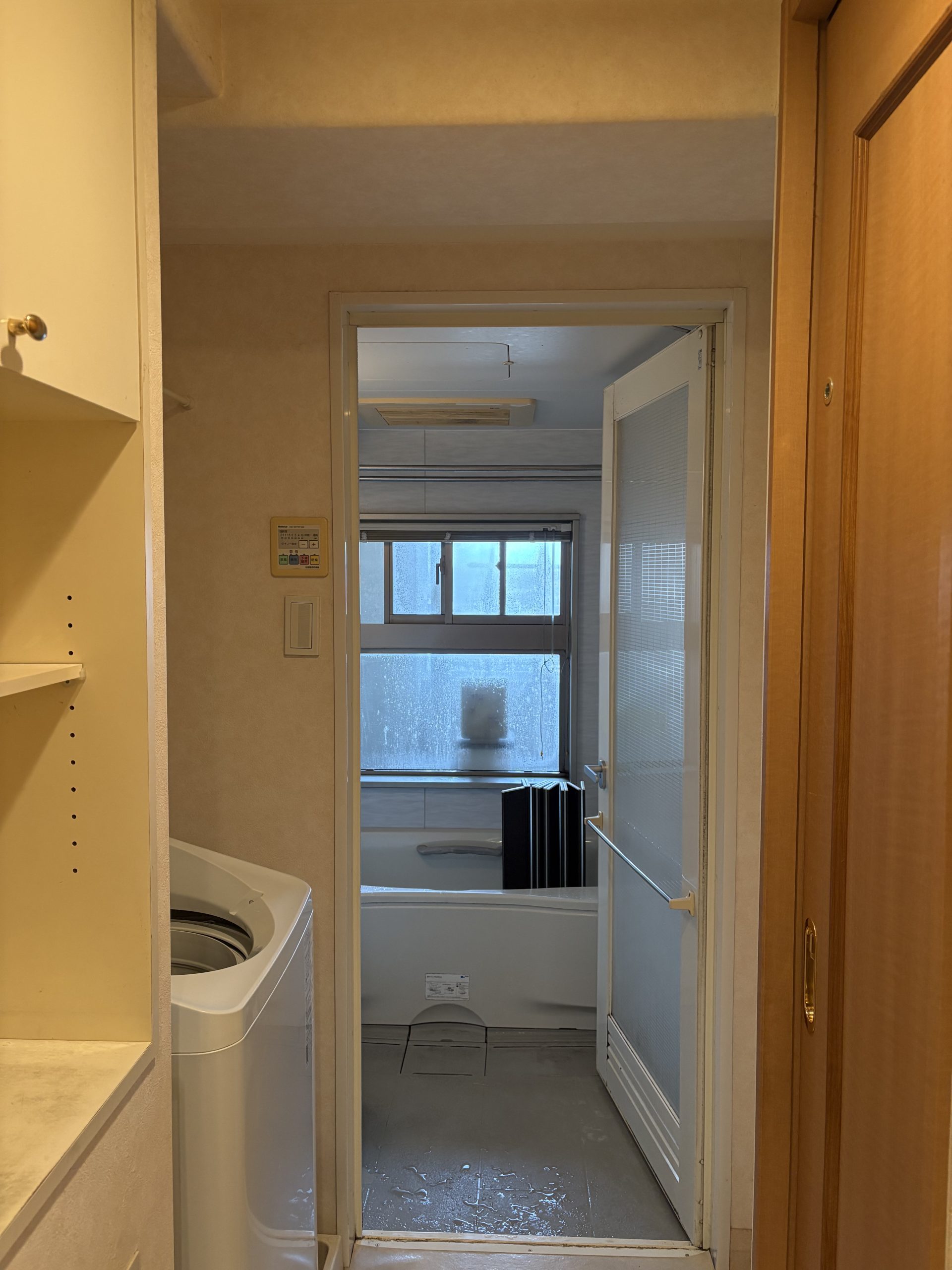 浴室のリフォームに伴い現地を確認させていただいたところ、隣接する洗面・脱衣室の床やソフト巾木にも捲れや剥がれなどの劣化が見受けられました。せっかく浴室が新しく綺麗になる機会ですので、空間全体の仕上がりがより良くなるよう、洗面・脱衣室の内装(床・巾木)の補修も合わせてご提案し、施工させていただきました。